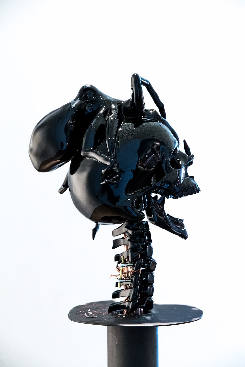 松嶺貴幸が3次元デジタル彫刻したモデリングデータを特殊3Dプリンターで99%ピュア出力し、彫刻作品としての原型を制作。無数の工程による特殊加工を施して表面を段階的に仕上げる師玉の立体作品です。